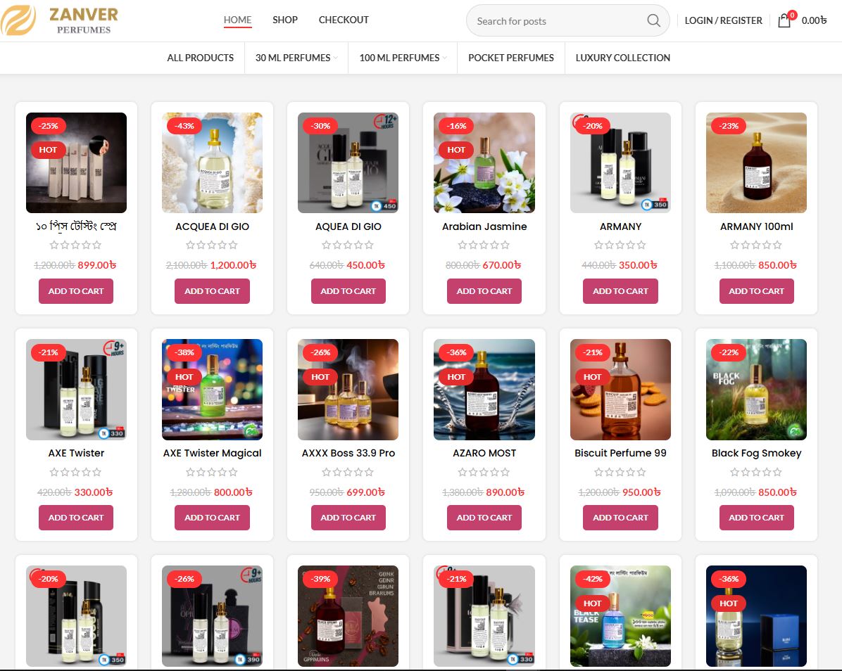 Zenvur.Shop রেডিমেড পারফিউম ব্যবসার ওয়েবসাইট